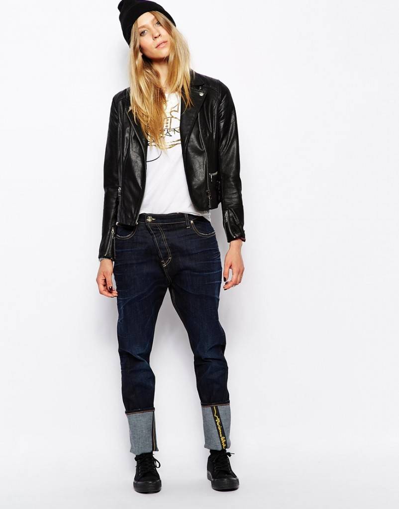 Относительно курток, то наилучшим вариантом для образа с джинсами-бойфрендами считается черная кожаная куртка в классическом стиле с вариациями в крое.