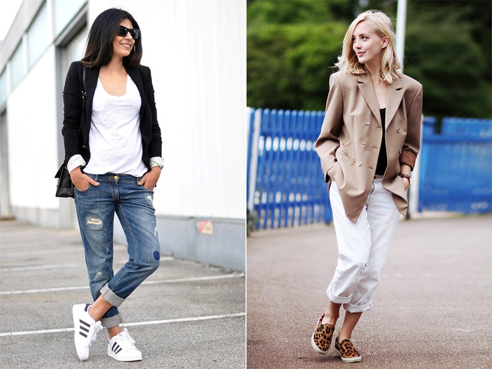 Многие женщины считают, что наличие рубашки в совокупности с джинсами бойфрендами предполагает присутствие кроссовок или кед, однако это не обязательно. Так, например, с белой рубашкой (которую кстати можно позаимствовать из гардероба вашего парня) хорошо работают туфли или босоножки (не забываем про щиколотку).