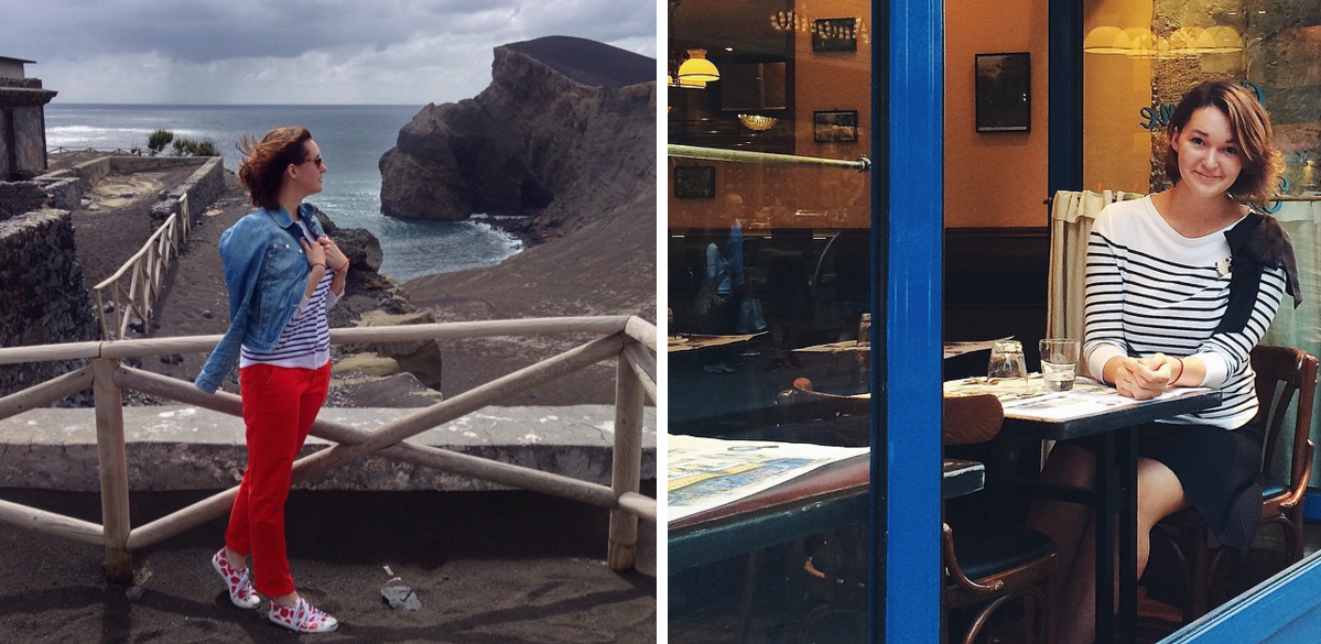 Пример того, как тельняшки можно носить в самых разных случаях (на отдыхе, на прогулке, в кафе, в поезде, на стройке/работе).Это Надя Зотова, дизайнер интерьеров:
