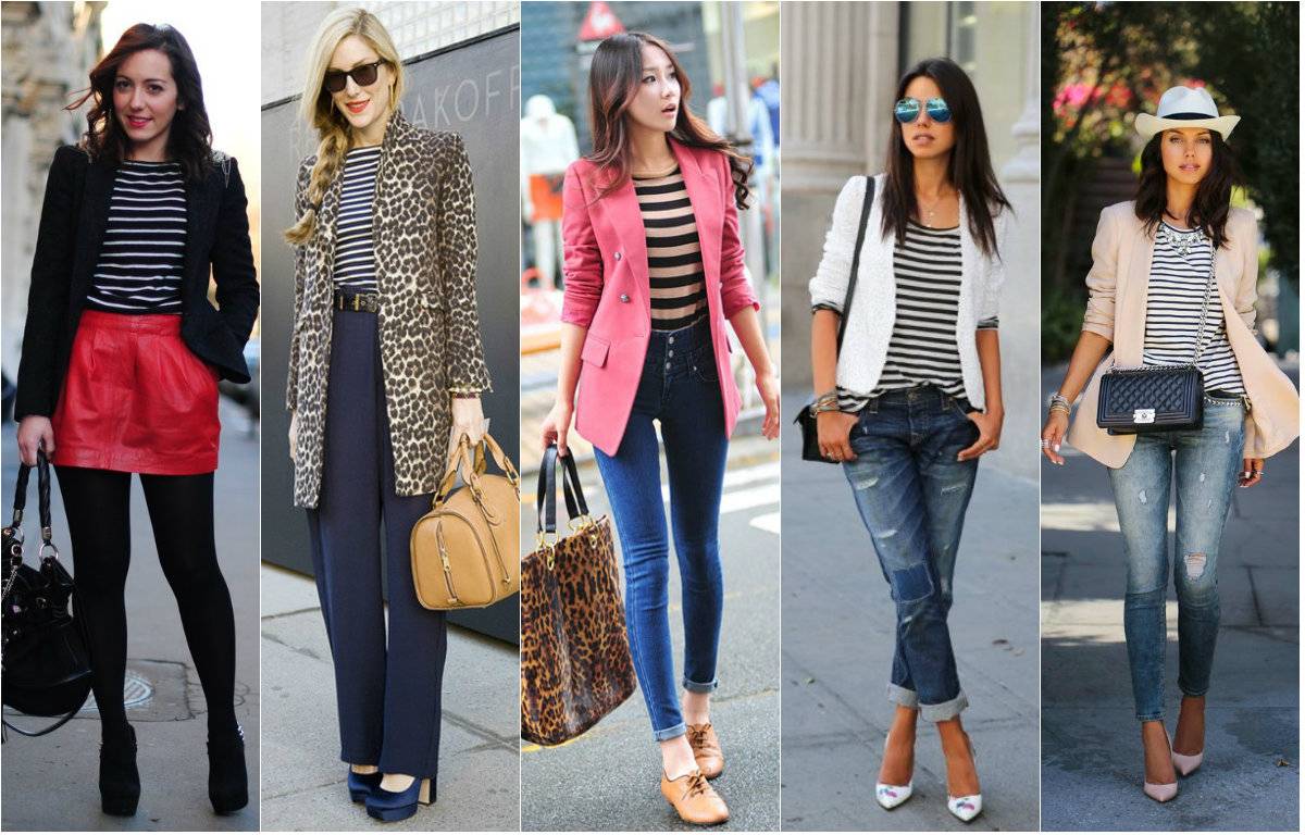 Идеальным сочетанием можно назвать тельняшку и легкую верхнюю одежду. Так, например, кардиганы, блейзеры, кожаные или джинсовые куртки и тренчи поверх полосатой кофточки или футболки выглядят ультра-стильно, просто и со вкусом.