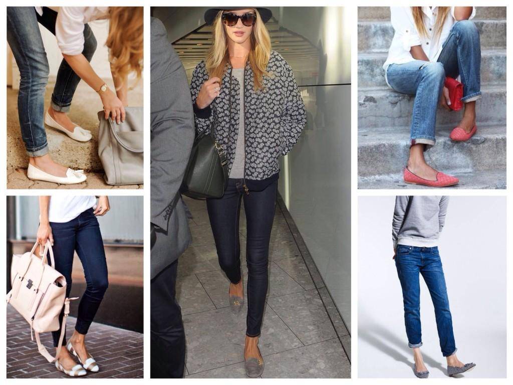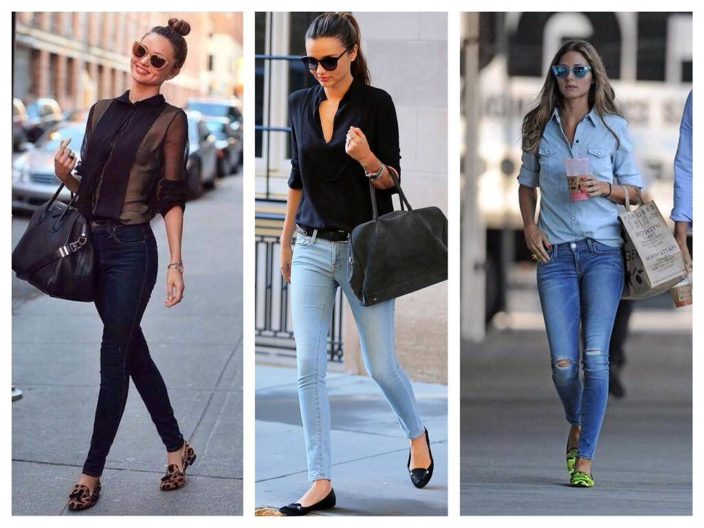 Комбинировать скинни с балетками могут только счастливые обладательницы высокого роста и длинных ног, альтернативой могут быть слиперы, слипоны.
