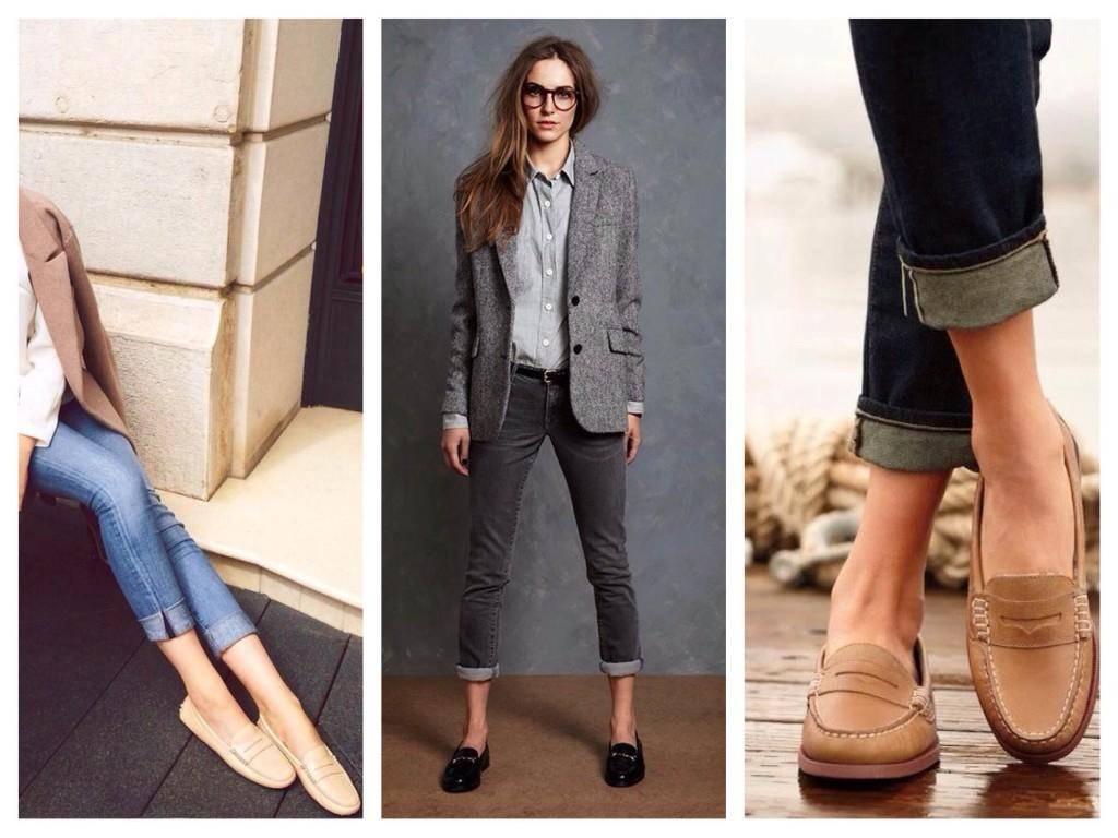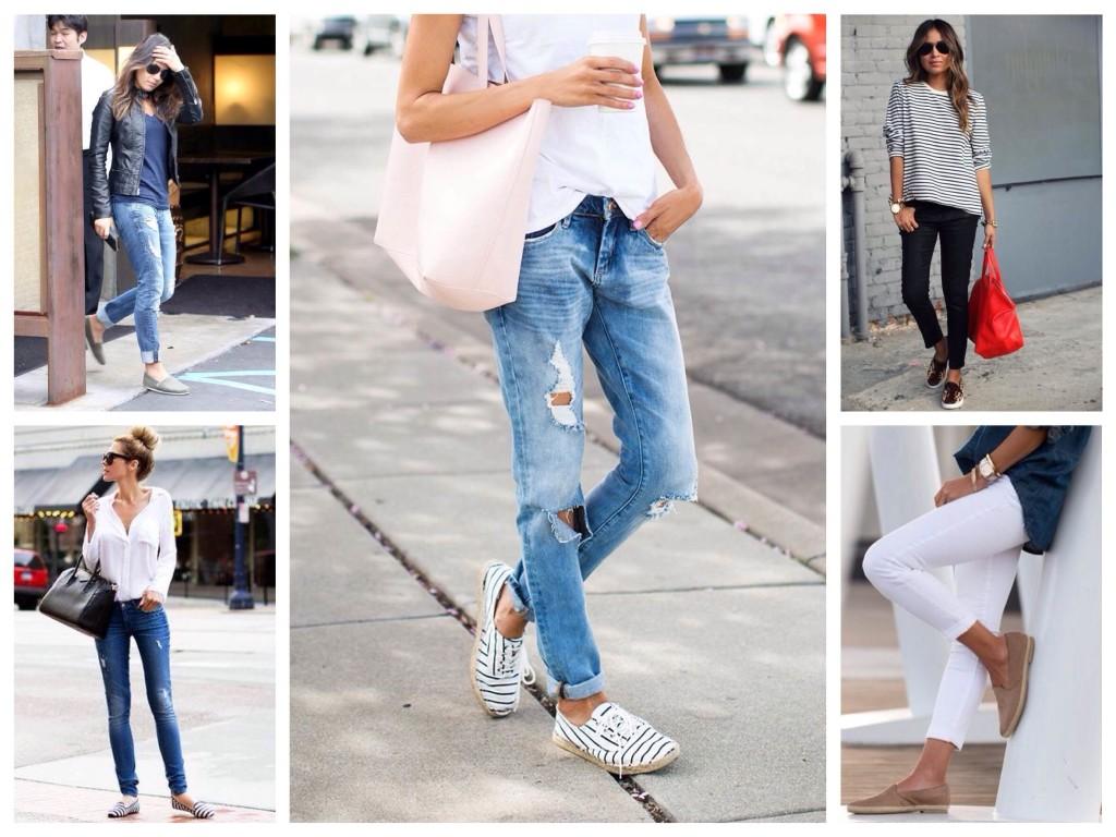 В теплый сезон скинни комбинируют с мокасинами, слипперами и эспадрильями.