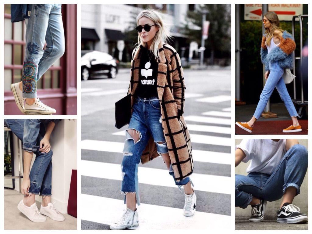 Как носить минималистские кроссовки с джинсами
