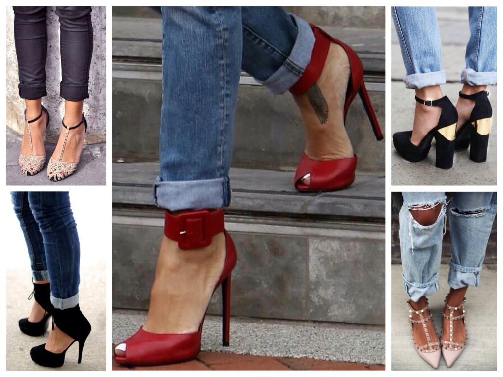 Такая обувь с укороченными джинсами – вариант для высоких и стройных дам.
