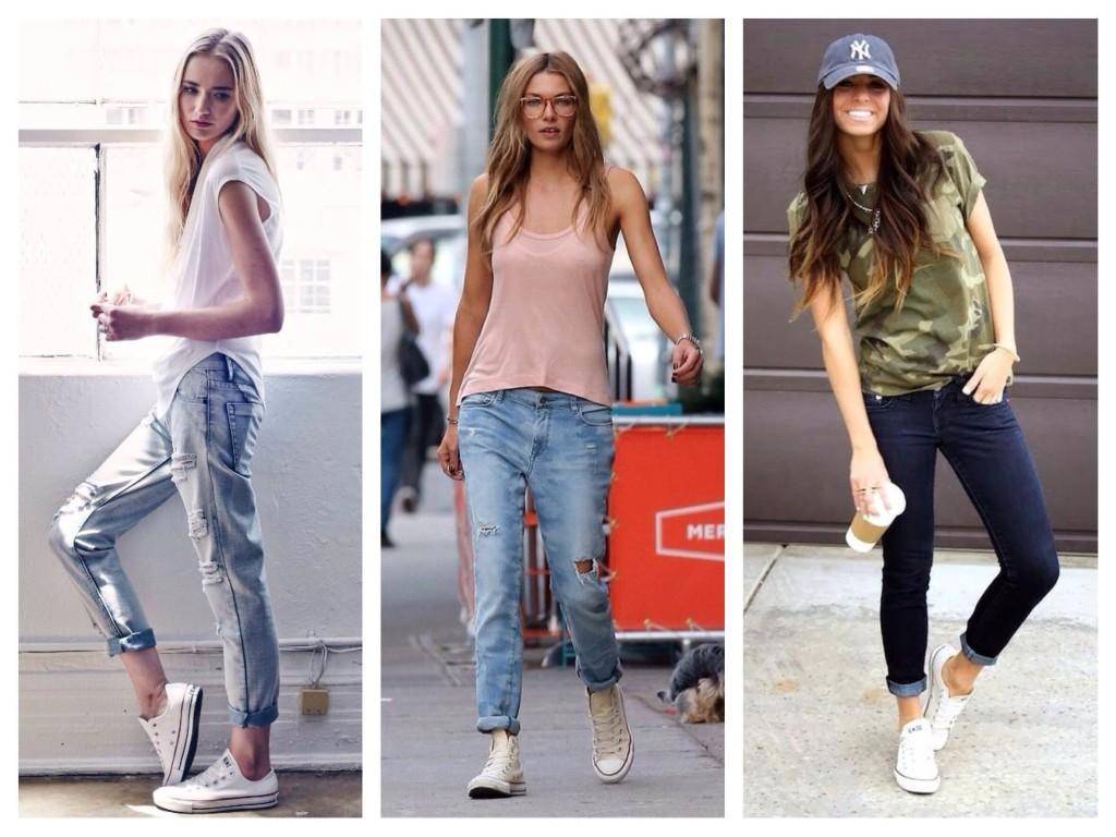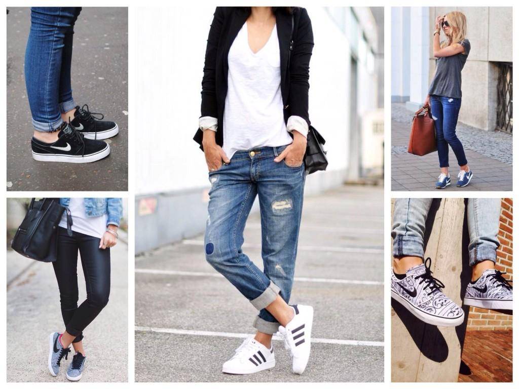 Не стоит заправлять в обувь джинсы, которые слишком коротки. Кроссовки или кеды в этом случае станут оптимальным выбором.