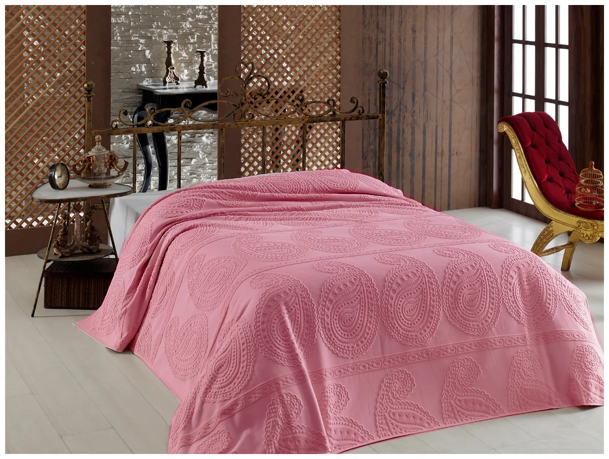 Как выбрать размер? Покрывало должно полностью закрывать постель, да, с боков тоже. То есть покрывало должно скрыть матрас, но при этом не свисать до пола. Так что вооружитесь рулеткой и снимите мерки с кровати. Добавьте к значению минимум 25-30 сантиметров с каждой стороны и получите нужное значение. При наличии ножной спинки, прибавлять к длине не нужно.