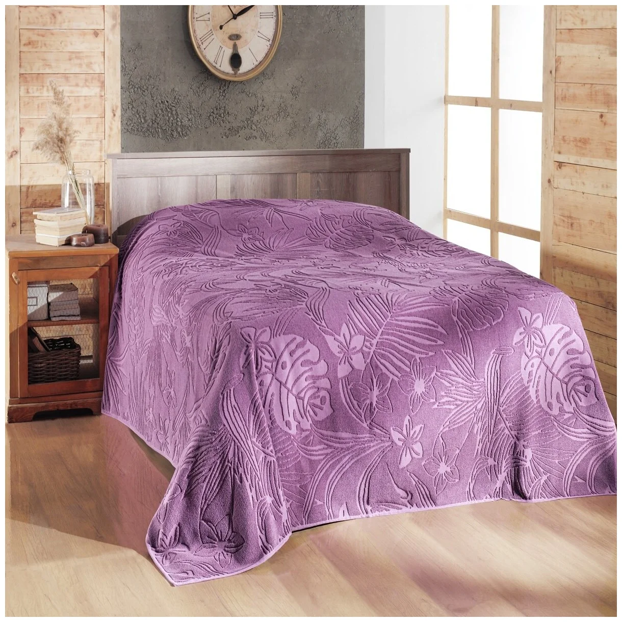 Покрывало может быть рыхлым или гладким. В строгом дизайне отлично смотрятся элегантные изделия с четким дизайном. Большая объемная текстура поможет создать в спальне немного непринужденный домашний уют.