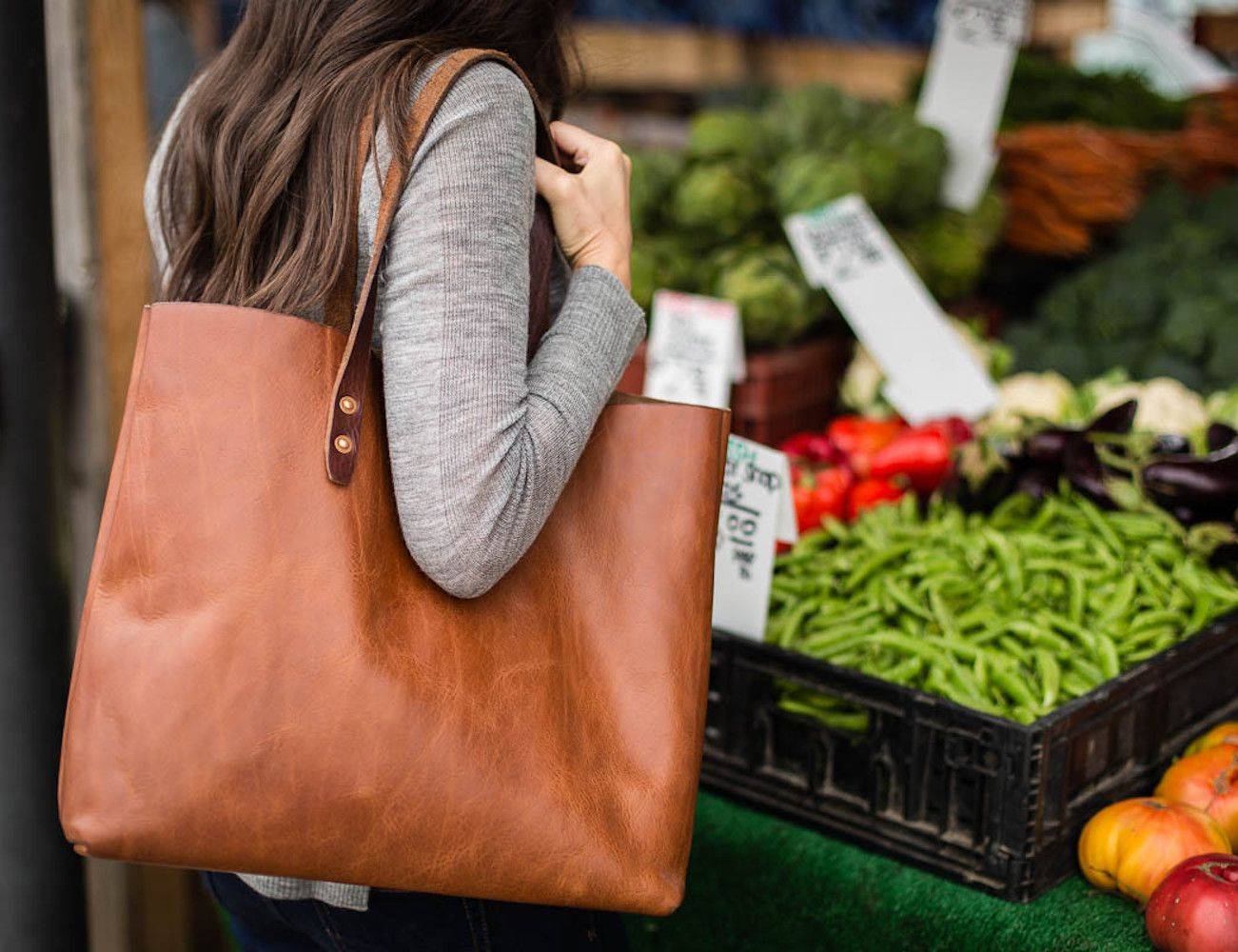 Пляжная сумка в коже. Возглавляет женские тренды уличной моды. Простая (порой без молнии, привычных замков), лаконичная, стильная, вместительная. Подходит как к стилю casual, так и классическому за счёт разнообразия материалов, используемых в их изготовлении.