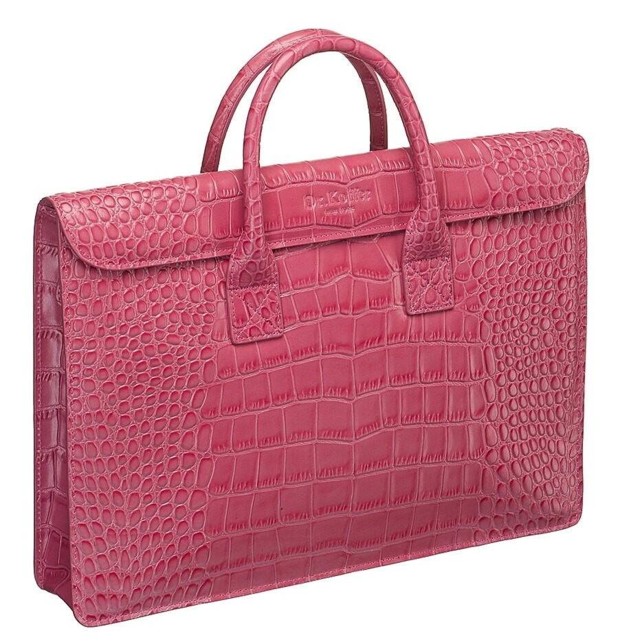 Материал из крокодиловой кожи напоминает змеиную, но отличается более крупными чешуйками. Насыщенный королевский цвет делает изделия более сложными.