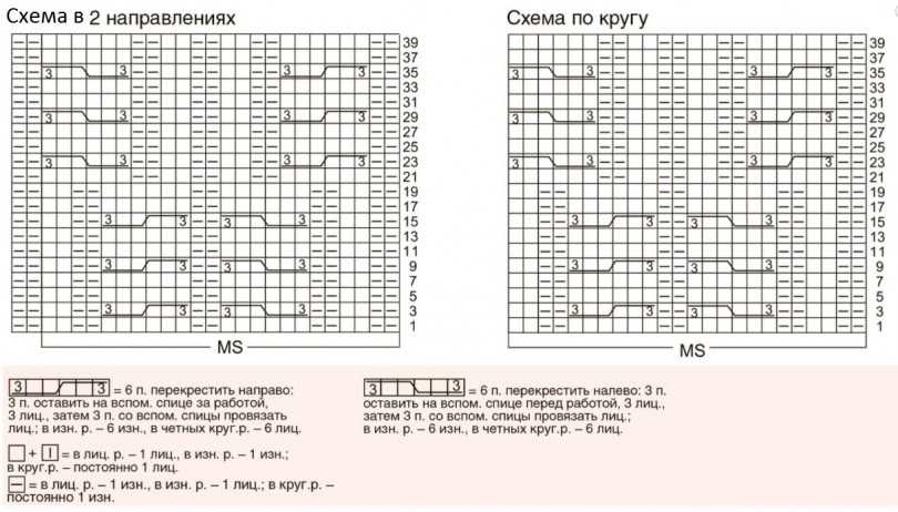На схеме орнамент изображен с лс, что делает работу проще при круговом вязании. Но если работа ведется прямыми спицами, надо ир выполнять по рис.