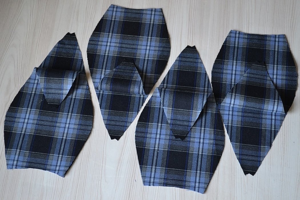 - Теперь надо аналогичным образом сшить клинья из подкладочной материи.