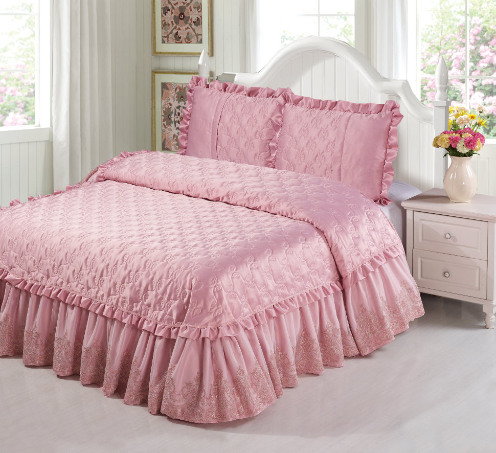 Покрывала из такого материала пользуются огромной популярностью, так как важнейшие характеристики искусственного шелка – шик, красота, глянец и довольно высокая прочность не уступают изделиям из натуральных нитей. Помимо этого, искусственный шелк не скользит, имеет меньшую сминаемость, что делает данный материал более практичным в применении, он так же гипоаллергенен и может быть использован людьми с повышенной чувствительностью кожи. Безусловно, синтетический шелк уступает натуральному по долговечности и по наличию полезных для человеческого организма свойств, но выглядит так же колоритно и нарядно, при этом стоит значительно меньше.