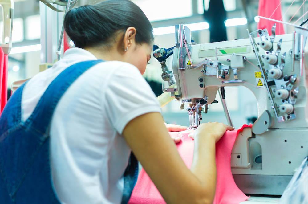 Азиатская швея или работница на индонезийской фабрике шьет на промышленной швейной машине, она очень аккуратна
