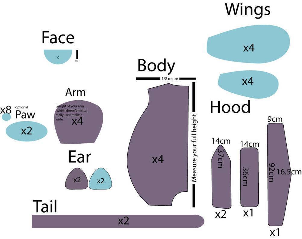 Выкройка для Кигуруми одна. Вы можете подстраивать ее под себя исходя из замеров и выбора животного.