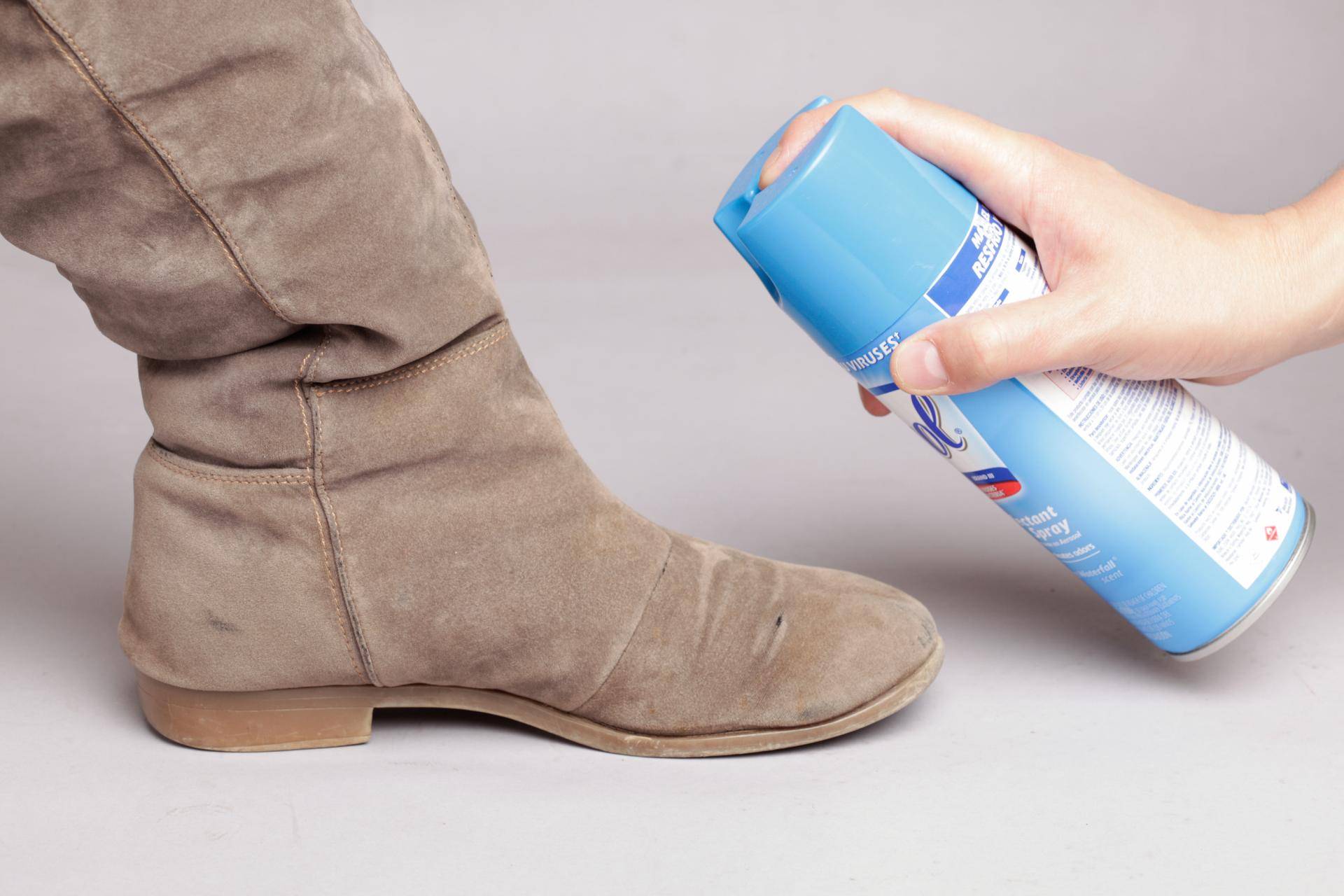 Обновить замшевую обувь в домашних условиях можно аэрозолем, выбирая соответствующее оттенку поверхности средство или бесцветное, если окрашивание не требуется.