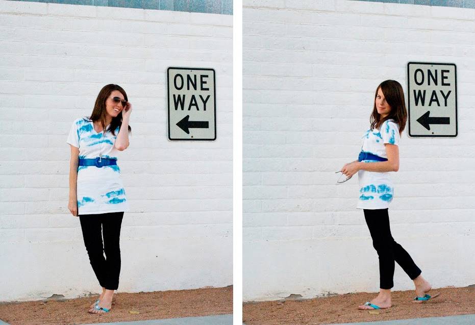 При желании на уровне талии сделайте 2 отверстия возле боковых линий и проденьте сквозь них пояс, чтобы подчеркнуть фигуру.