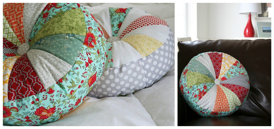 - Пуф-подушка с чехлом, выложенным из цветного лоскута.