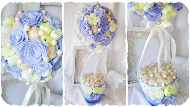 Они должны быть не плотными, а воздушными. На пенопластовый шар приклеиваются поочередно все детали, и поделка украшается дополнительными элементами декора. Это могут быть цветы или бусинки, маленькие искусственные яблоки или груши.
