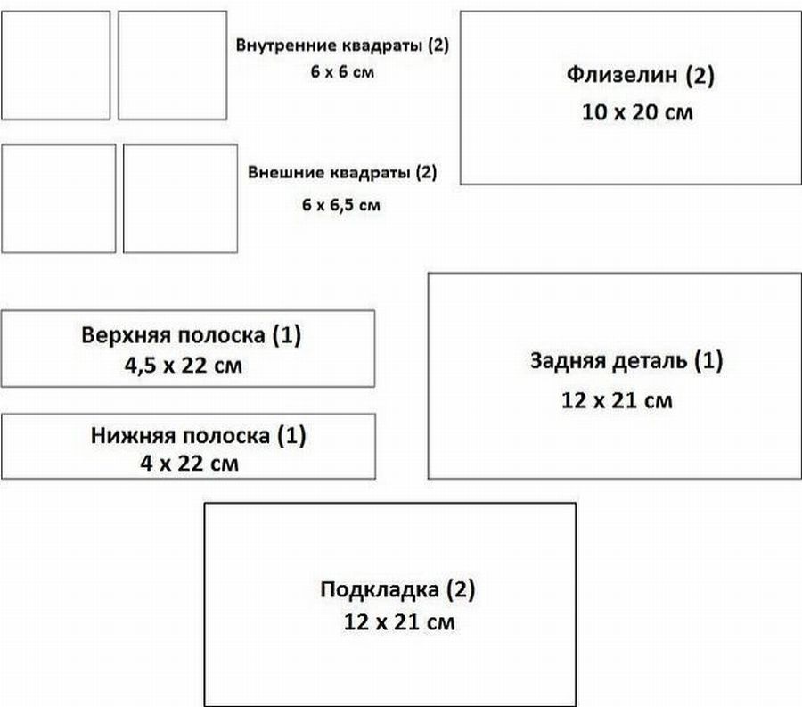 - Выкройка соответствует простой сумке. Возможно сочетание нескольких полосок ткани.