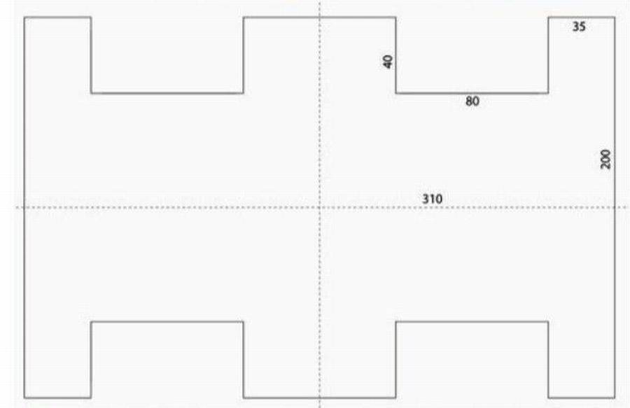 Что касается картонной модели, главным ее преимуществом является возможность сделать изделие разной формы и с необычными декоративными деталями. Одна схема такой популярной заготовки представлена ниже.