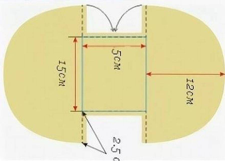 Углы нижнего основания аккуратно загните внутрь примерно на 2 см. Закрепите их портновскими