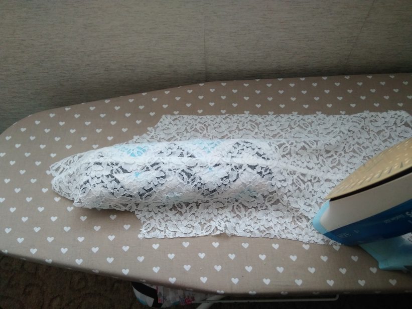 - Выкроить жабо из кружева или другого типа ткани по желанию.