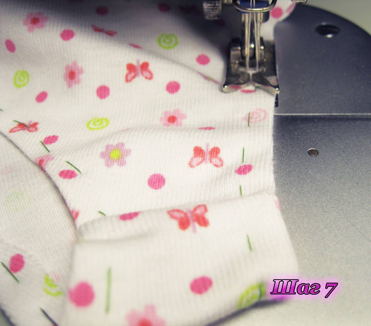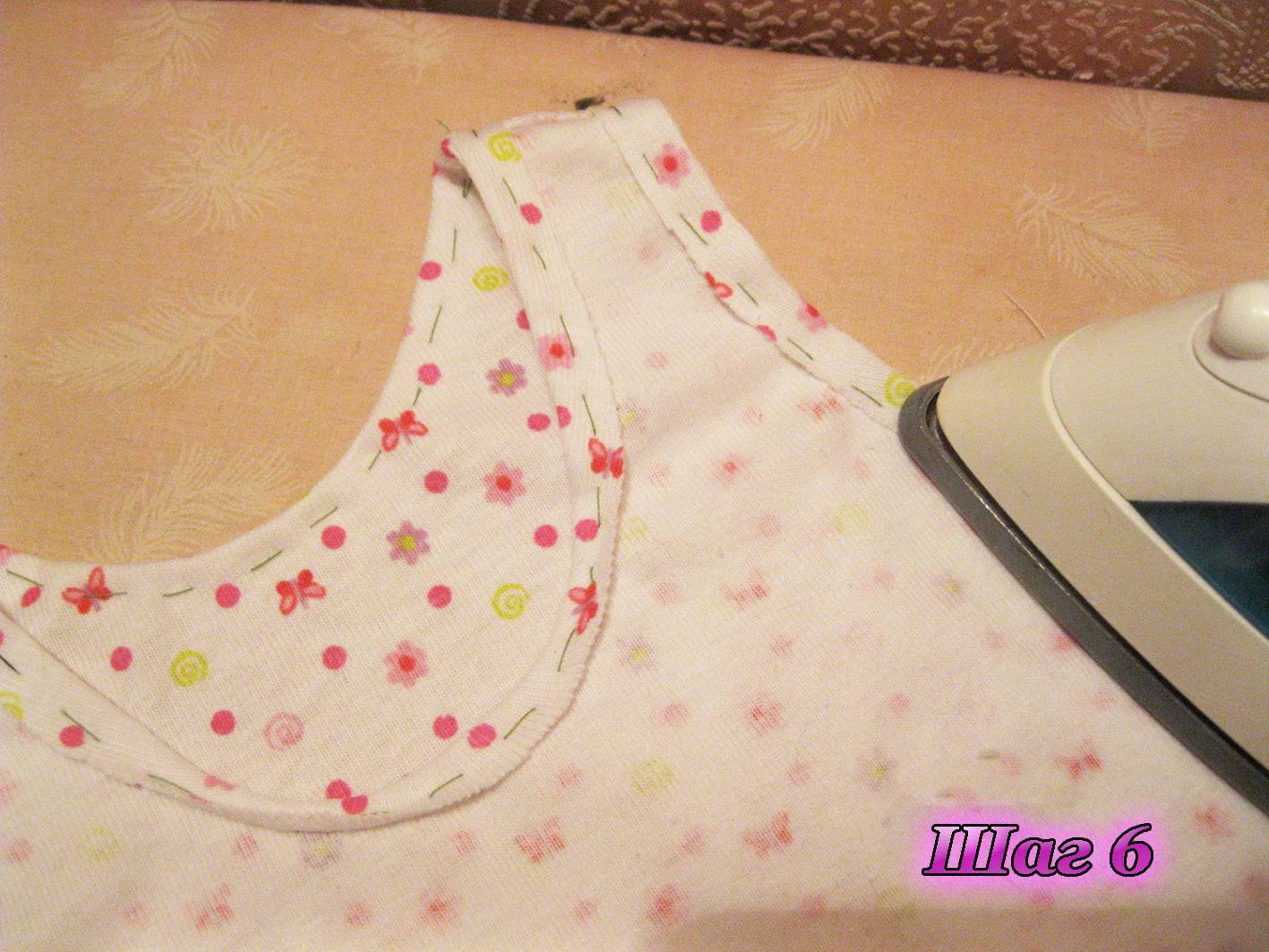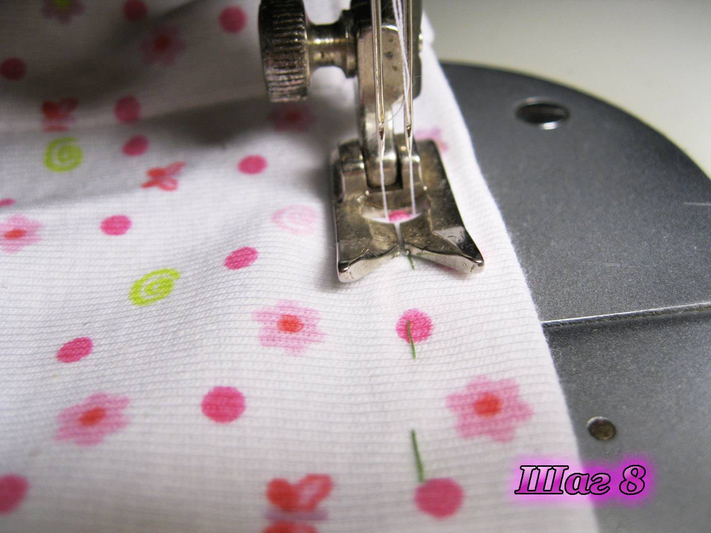 - Подгибаем низ футболки и шьем на машинке ровной строчкой.