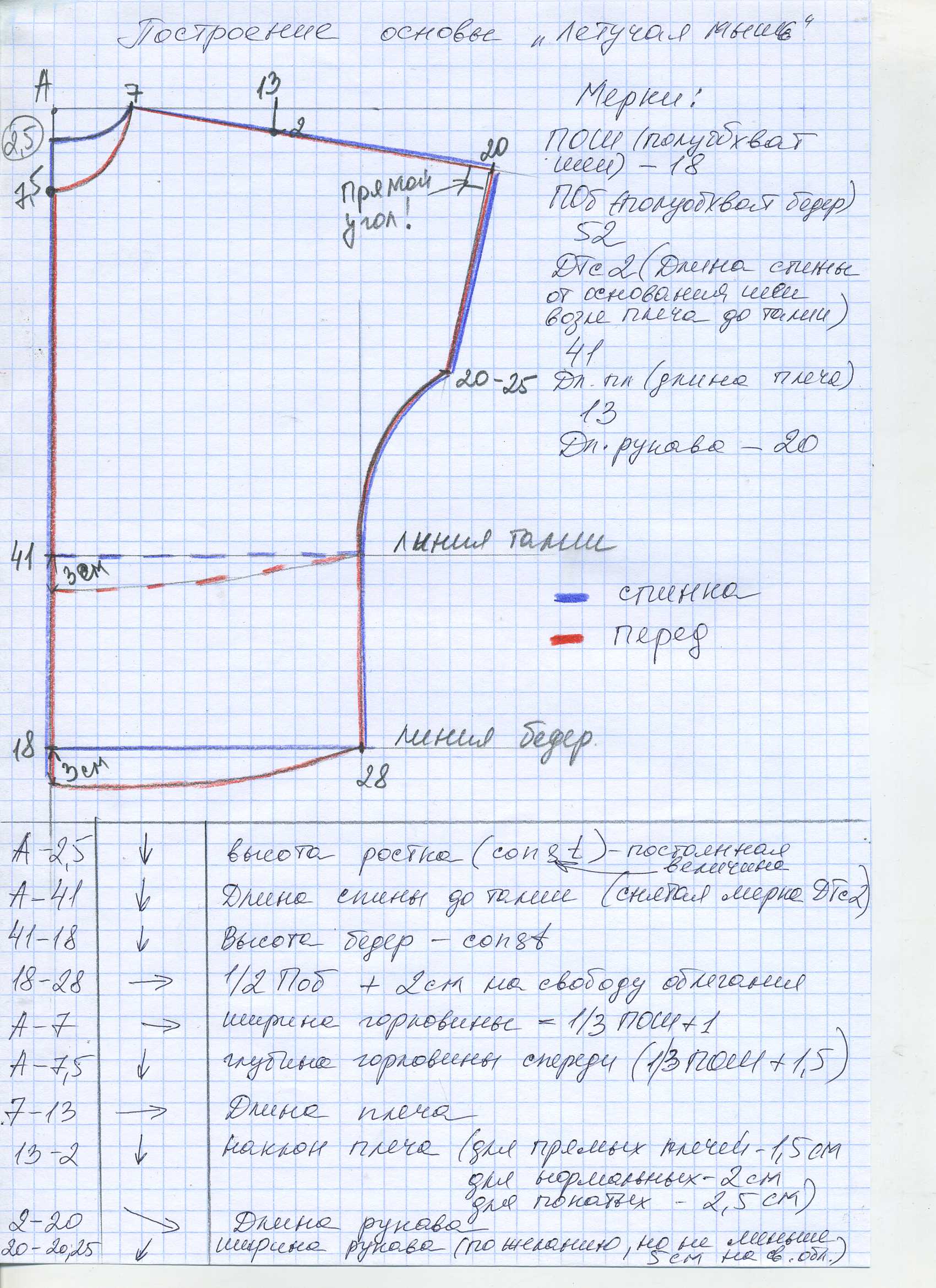 - Рукав. Ширина рукава: АВ = Обхват плеча по мерке минус 0- 2 см (в зависимости от эластичности материала, отрицательную прибавку можно увеличить).