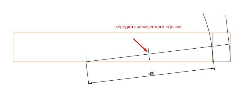 - На середине этой линии сделать перпендикулярную отметку на высоту 1 см.