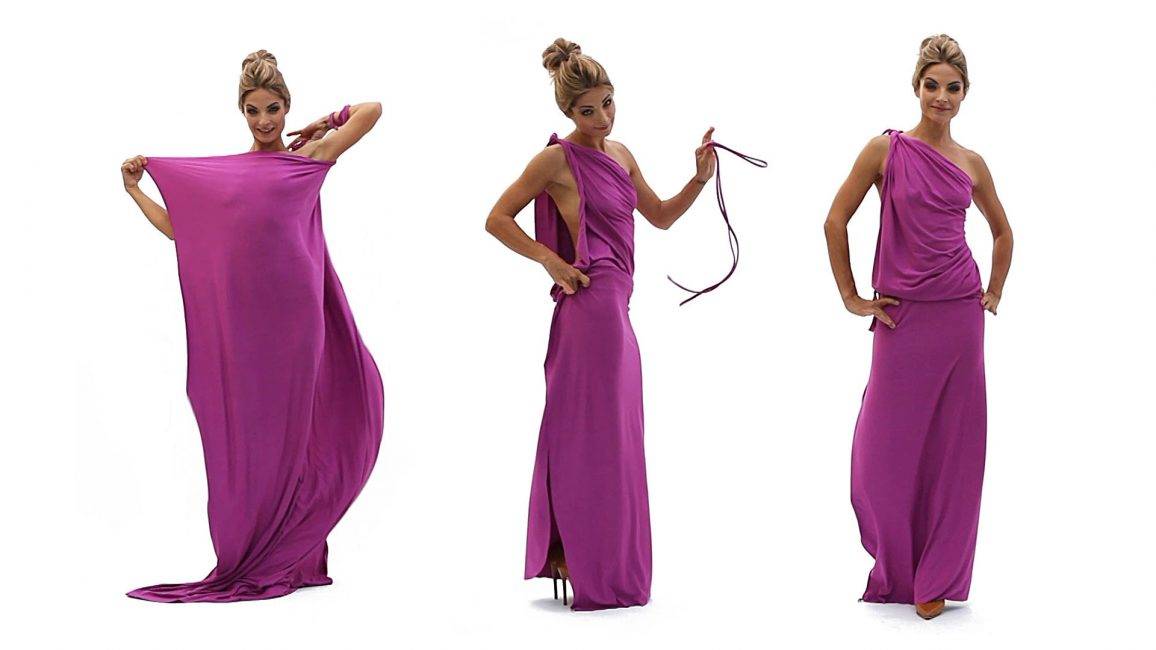 Платье-трансформер — удобный вариант трикотажного наряда. Делается оно очень просто и без выкройки. Нужно следовать инструкции: