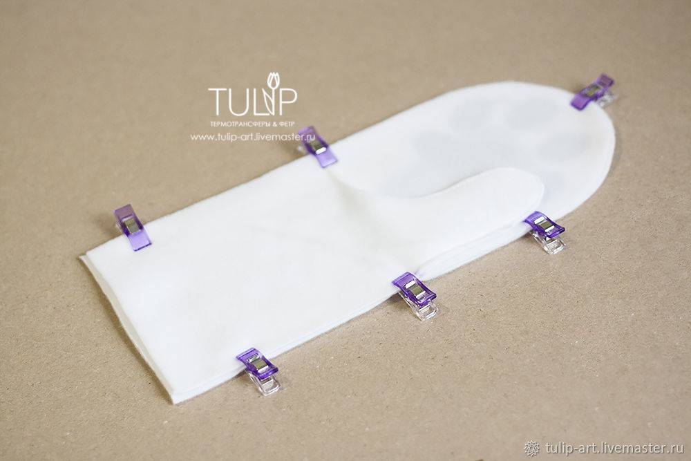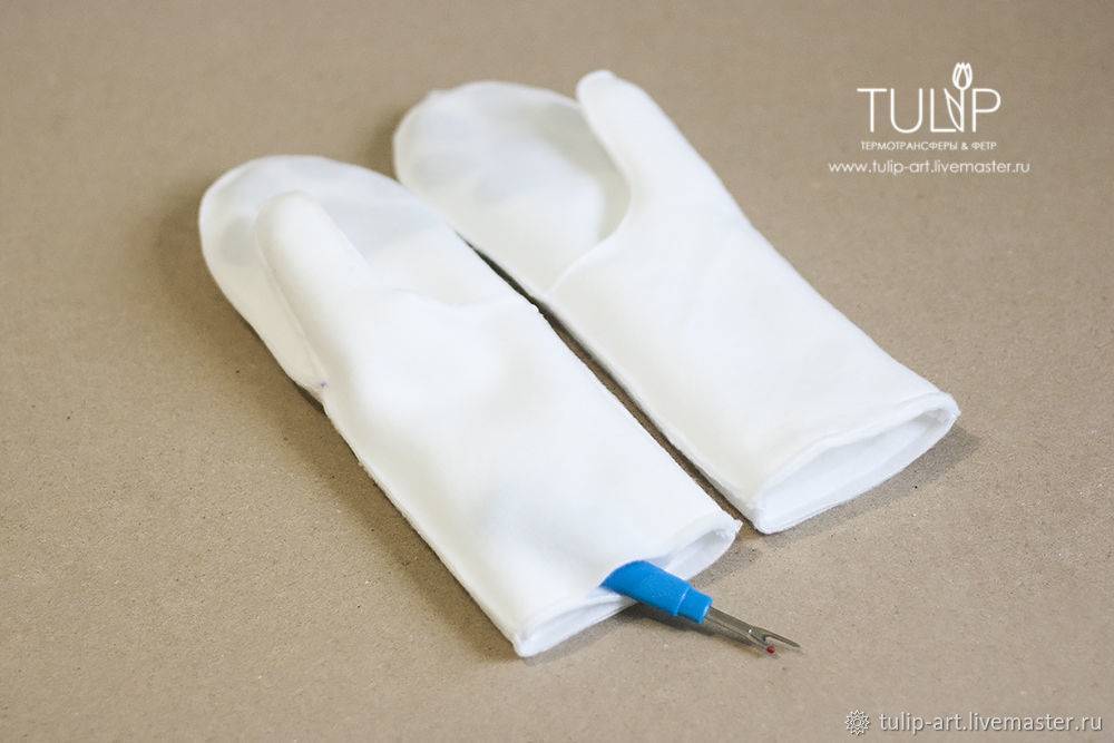 - Подверните края внутренней и внешней варежек внутрь и сколите или наметайте.