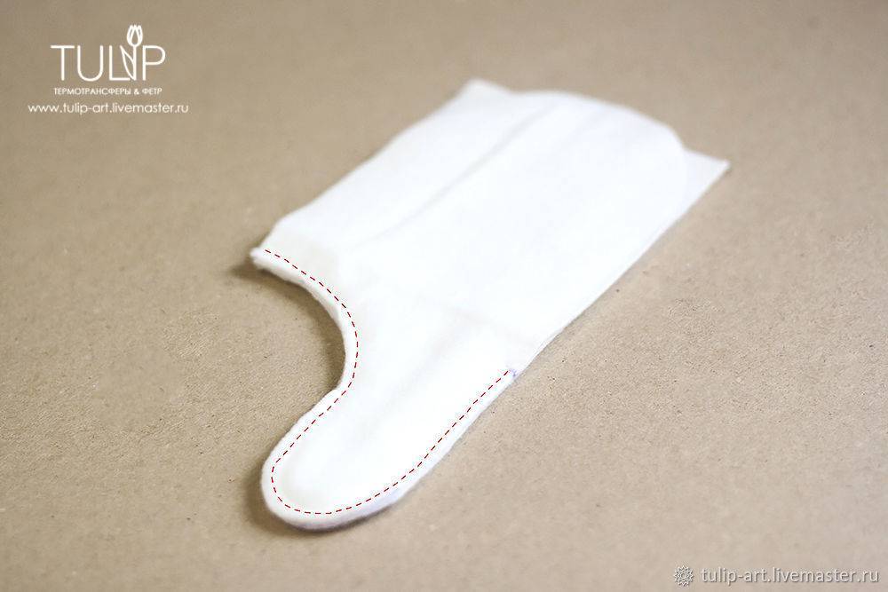 Накладываем варежки на кожу и обводим их. Вырезаем. Вставляем в варежки. Для чего нам это нужно? С изнаночной стороной я не работаю, вышиваю только по лицу, благодаря прокладочке не надо постоянно руками проверять, не пришили ли мы случайно обе стороны варежки. Главное, чтобы прокладка была четко по размерам варежки, не меньше и не больше, это еще поможет избежать стягивания и растягивания при вышивке.