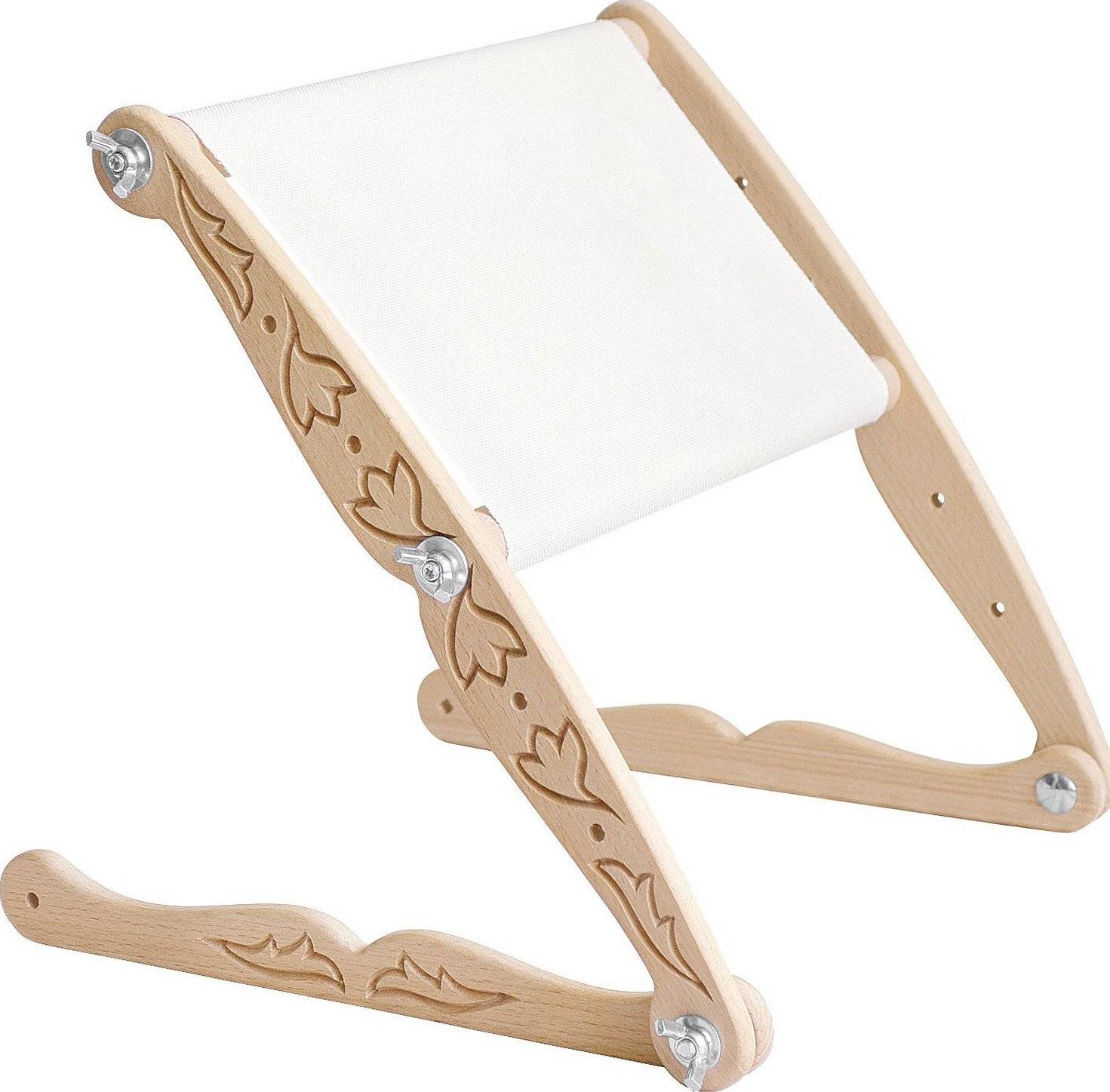 Простой дешевый российский станок, обладающий регулируемой размерами рамки в 56 на 30 сантиметров. Он также обладает круговым вращением на 360 градусов и сделан из высококачественной березной фанеры. За 1200 рублей, а именно столько он стоит, можно сэкономить кучу времени и нервов, появляющихся при изготовлении вышивки.