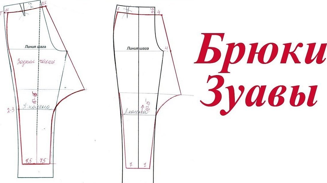 Основной особенностью зуав является зауженная часть штанины к низу. Замерять ее нужно предельно внимательно, так как на ноге она должна сидеть в обтяжку.