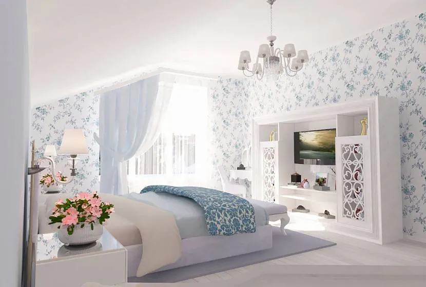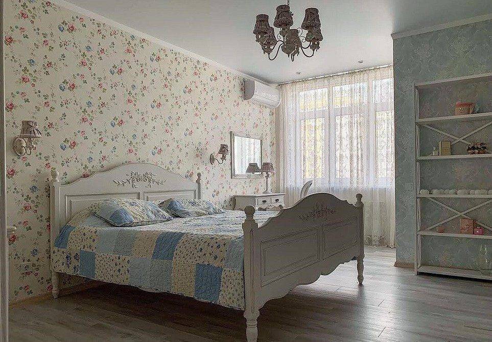 Спальни в хрущевке маленькие, и оформление их в стиле прованс нужно тщательно продумать. Стены можно оклеить обоями с изображением цветов, листьев. Если комната узкая, их лучше просто побелить. Это позволит визуально расширить пространство.
