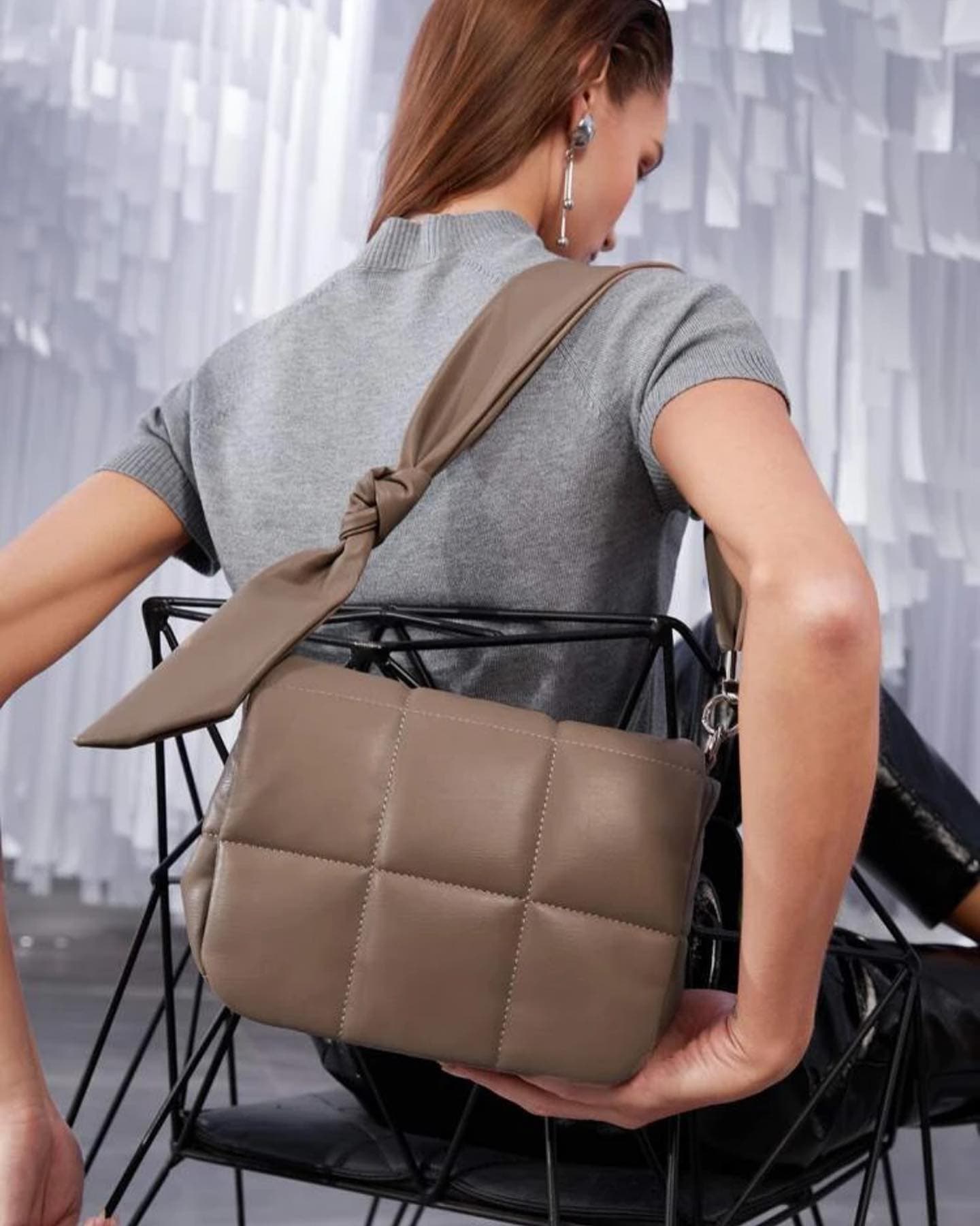 Еще один забавный и достаточной милый тренд сумок 2023 — аксессуары в виде подушек. Свое название они заслужили “надутой” формой и практичным материалом — чаще всего, эко-кожей. По форме у подушек нет регламента, ведь они встречаются и в форма клатча без ручек, и в качестве сумки хобо, и даже в виде объемного шопера. С цветами та же история: классическая сумка-подушка чаще всего выполнена в спокойной нюдовой, коричневой или серой гамме, но встречаются экземпляры с животным принтом или яркой расцветкой.
