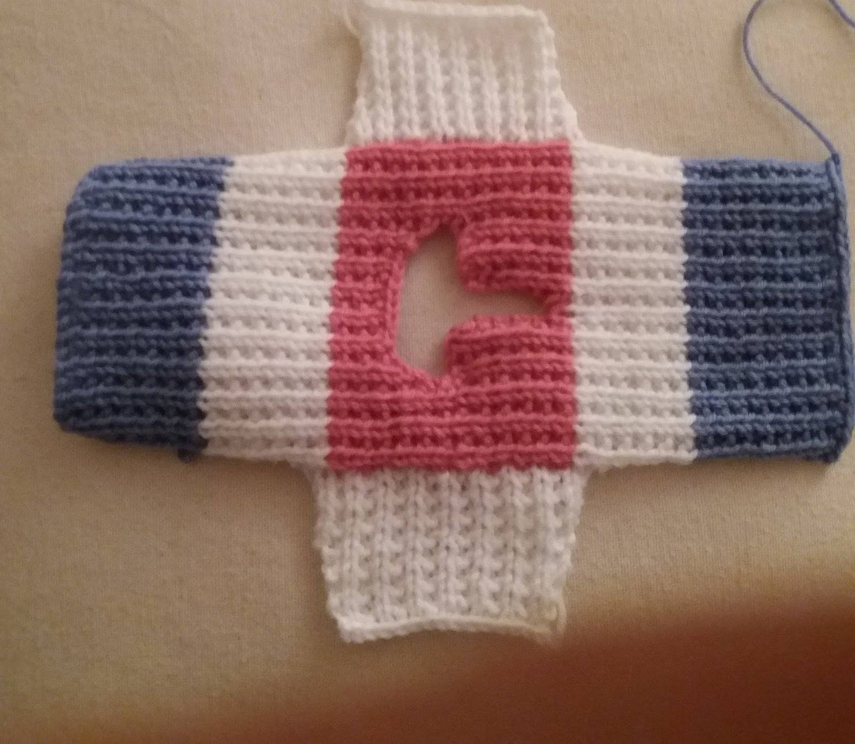 - с 4-го р. по 16-ый р.: сарафан вяжем по рисунку главной схемы, чередуя цвета нитей. Обрезаем белую нитку;