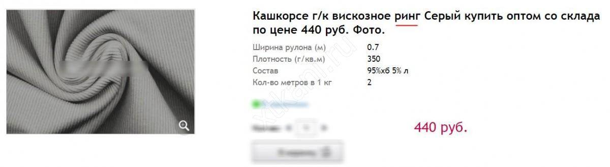 Кольцо состоит из 95% хлопка и 5% лайкры. Хлопок среднего качества. Холст в меру плотный, тянется не очень хорошо, но после стирки не дает усадки, служит долго. Цена — от 300 рублей (опт).