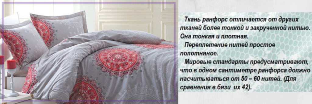 - Ранфорс адаптируется к температуре среды. В холодное время он сохраняет тепло, в жаркое – остается прохладным.