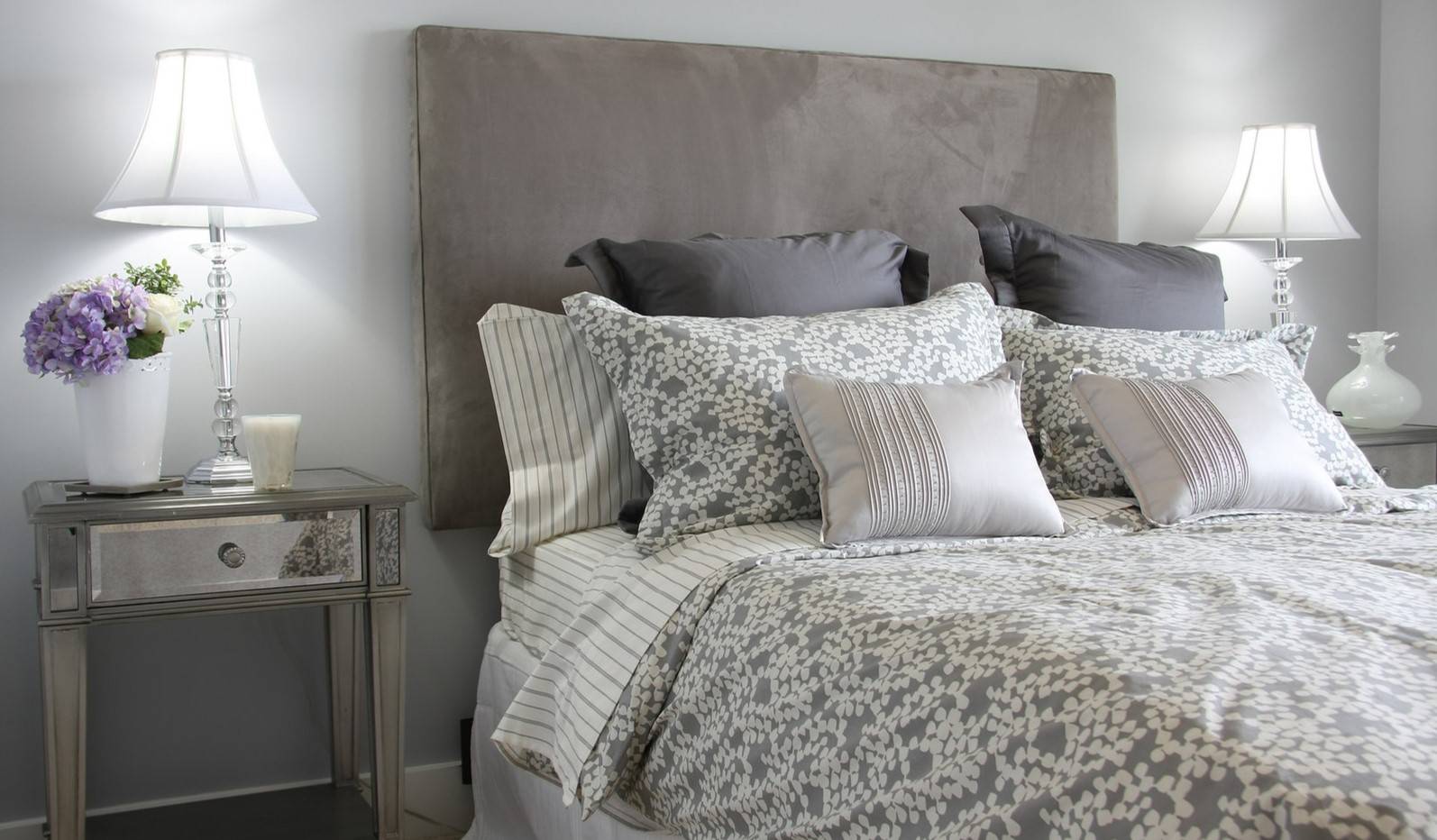 Белье можно подобрать под оттенок стен и мебели в спальне