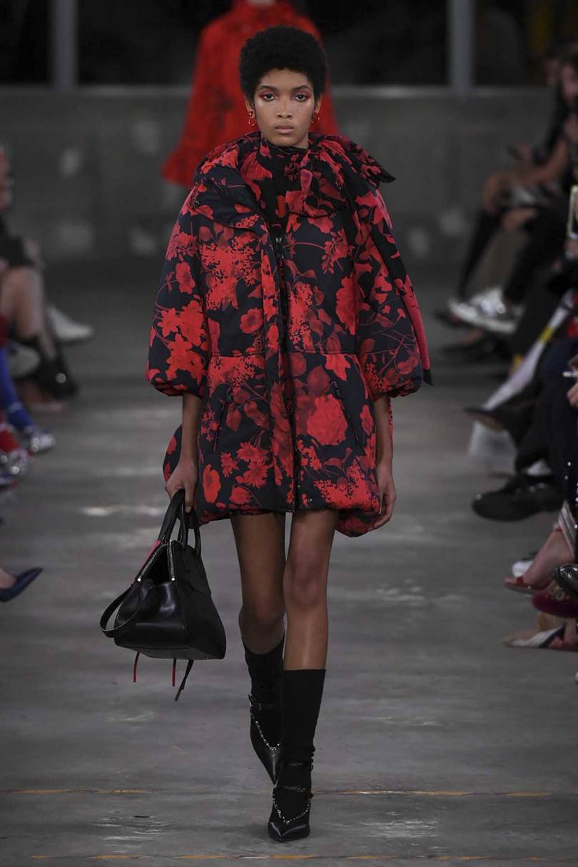 Пальто-кокон от Prada выглядит, как идеальный овал. Плечи здесь увеличены, но выполнены покато. Они не стали ярким и единственным акцентом, как в образе от Fendi. Рукава у платья словно надувные, такой стиль ближе к гротеску, чем к реальной жизни.