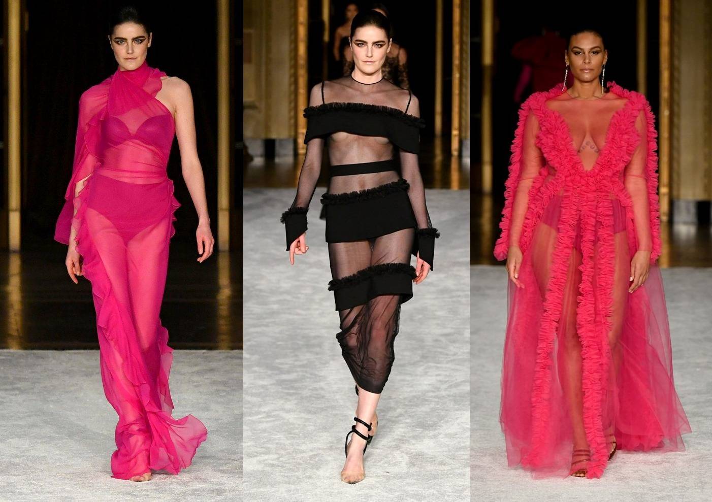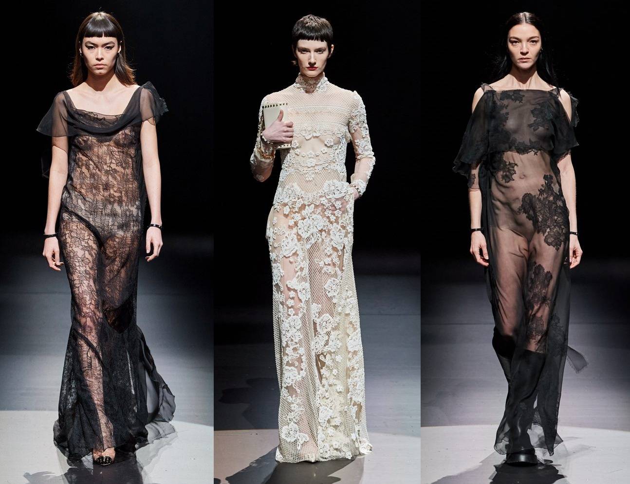 Наряду с популярностью теплых фактур модными остаются с приходом холодов прозрачные ткани, которые мы чаще всего увидим в качестве вечерних нарядов..