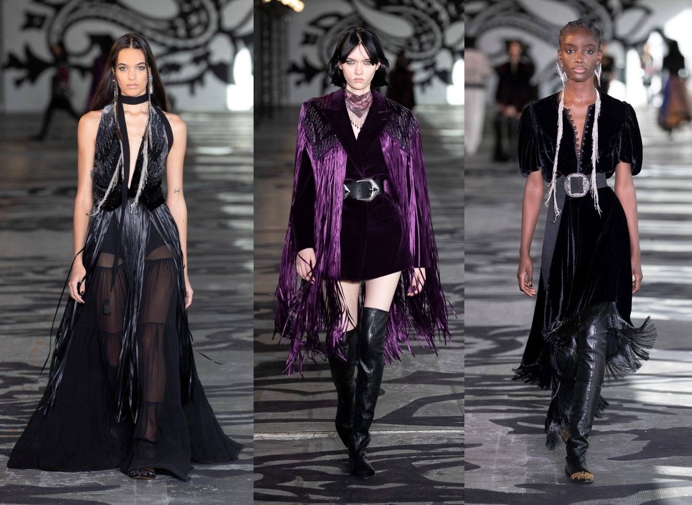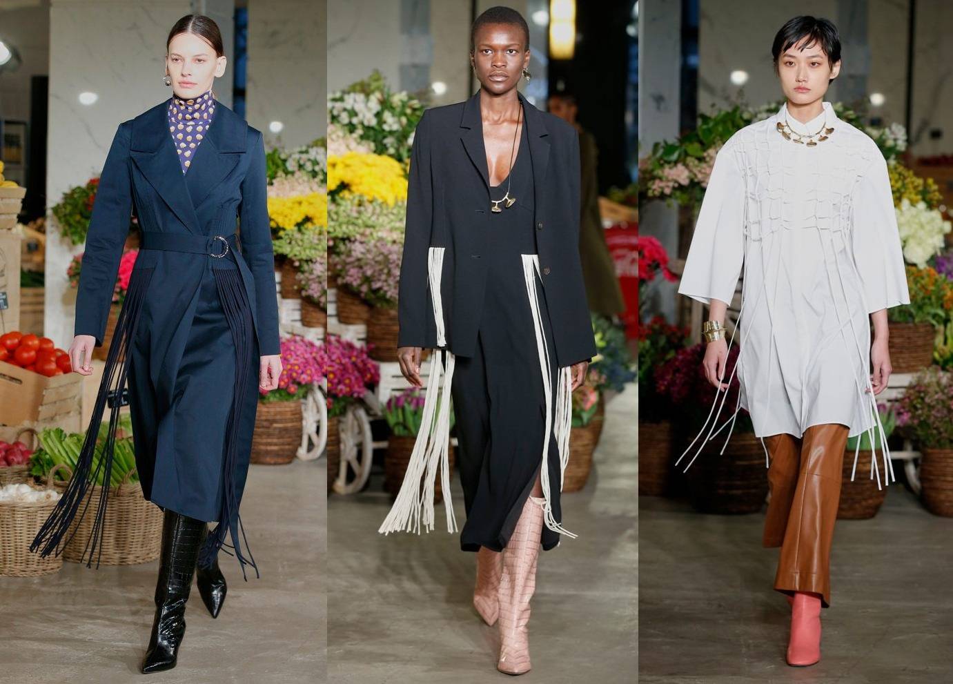- Объемные рукава, юбки, платья и блейзеры с бахромой;