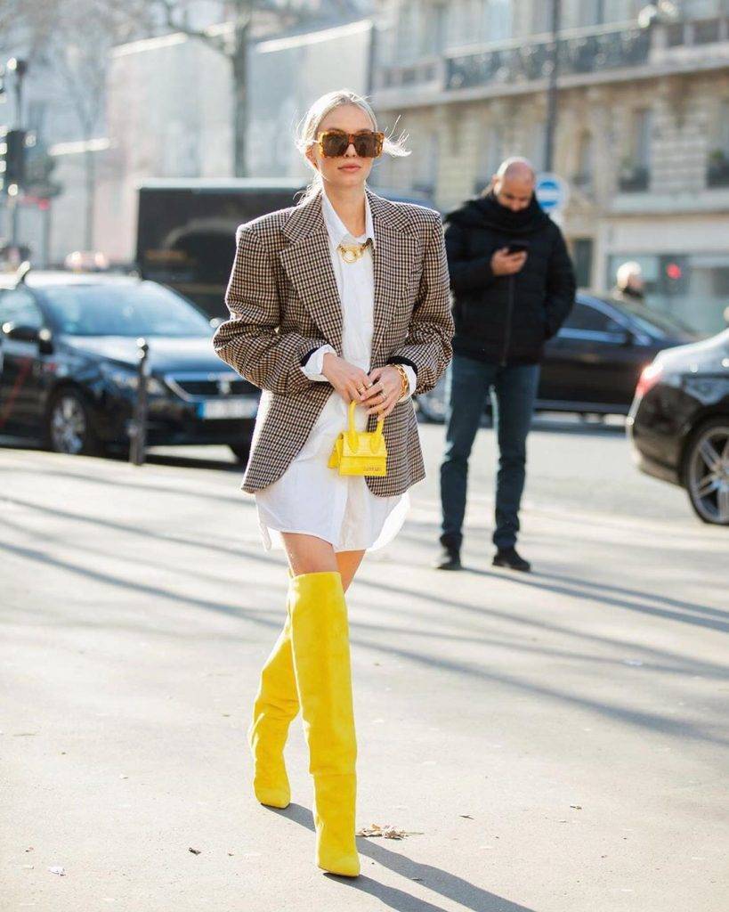 Для прогулки по городу не забудьте подобрать в цвет к вашим сапогам правильные аксессуары: белые перчатки, сумочку или клатч, шапку и шарф. Так ваш образ получится завершенным.