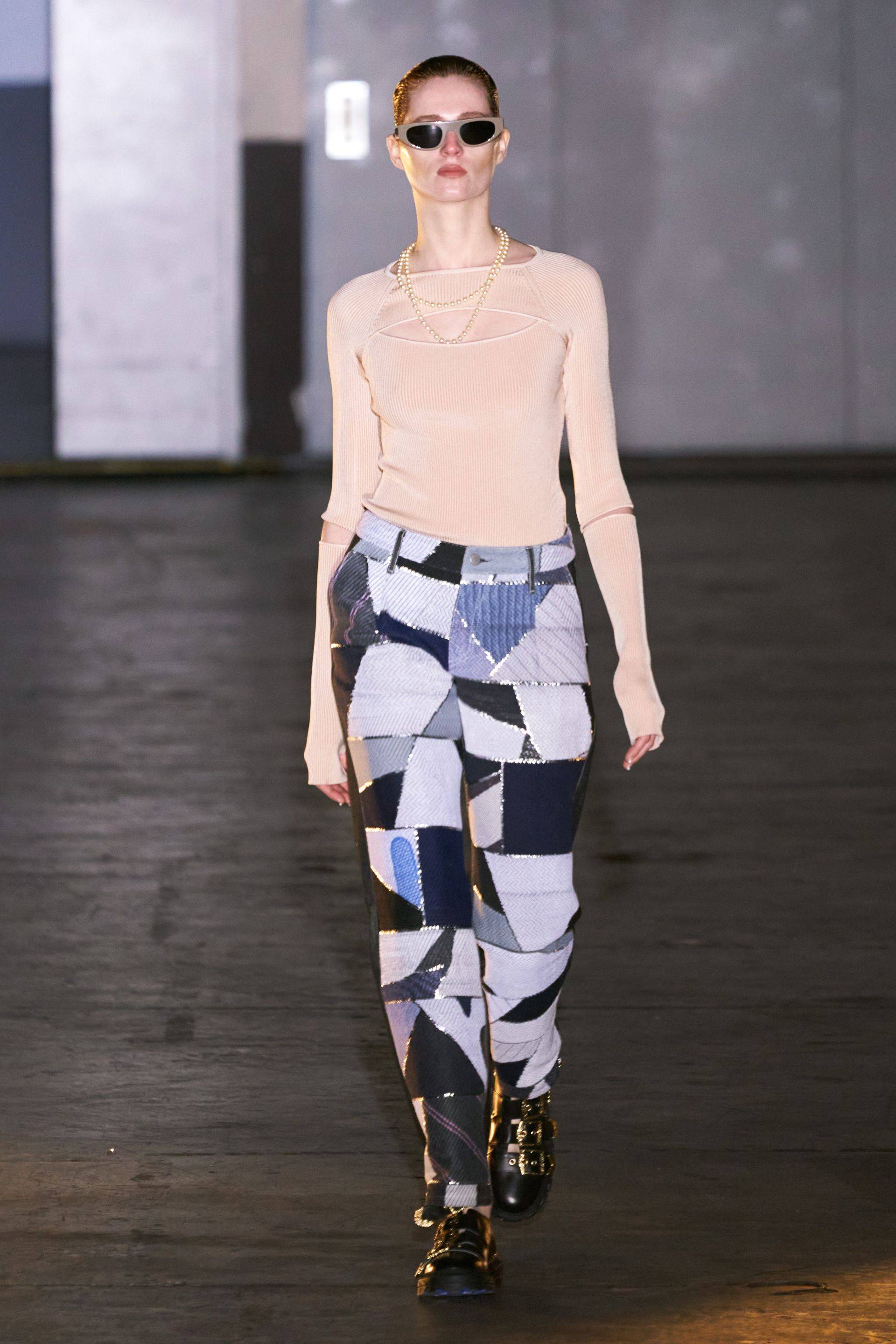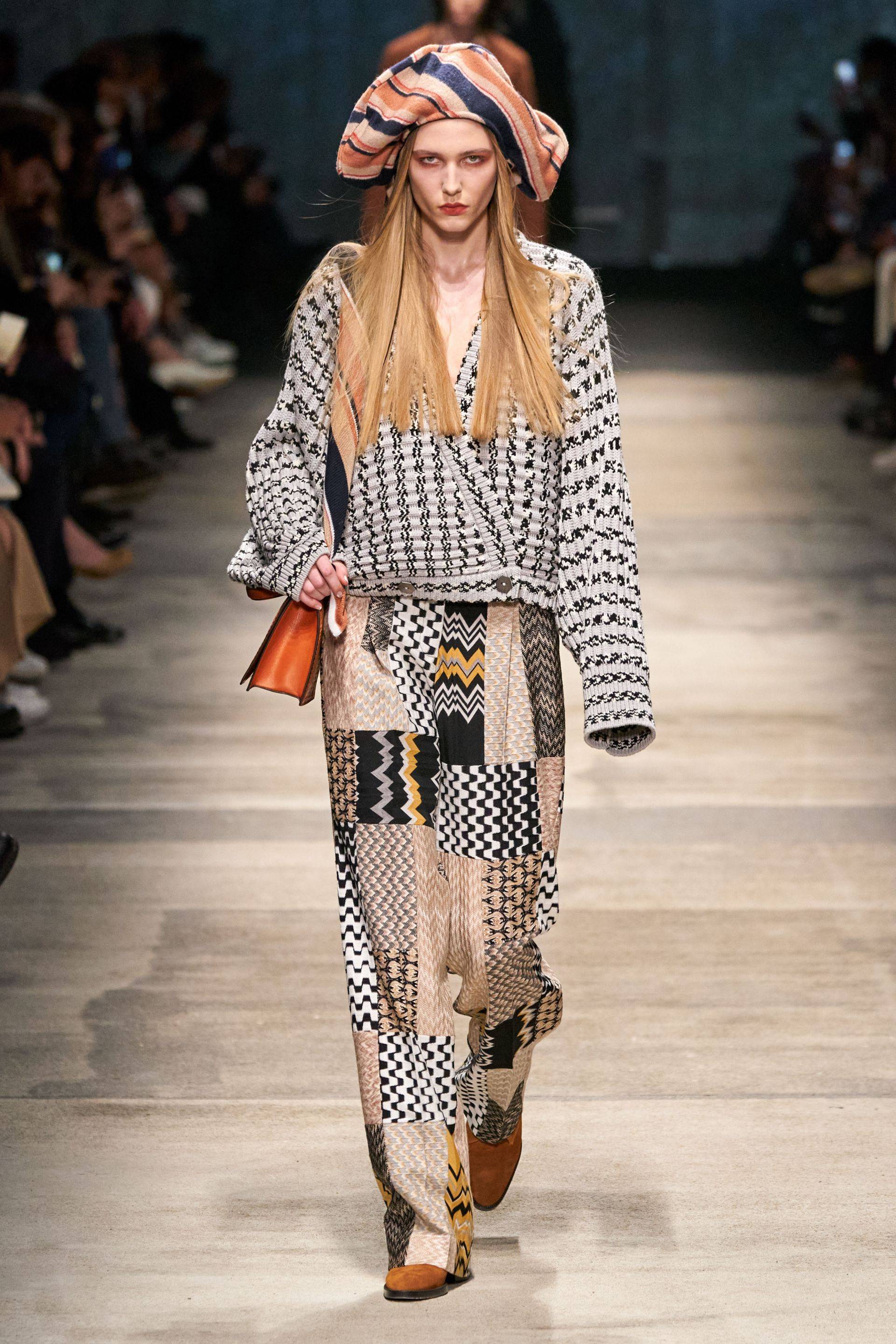 Брюки, сшитые из кусочков разных тканей, в своих коллекциях осень-зима 2020 показали Koché и Missoni: если пестрые total-look образы пока кажутся слишком смелой идеей, которая не подходит для повседневной жизни, носите их с боди, рубашками и водолазками в рубчик пастельных оттенков или сочетайте с кардиганами, свитерами или жакетами с лаконичными принтами, которые будут в моде в этом сезоне, – тонкой полоской, клеткой тартан или черно-белой «гусиной лапкой».