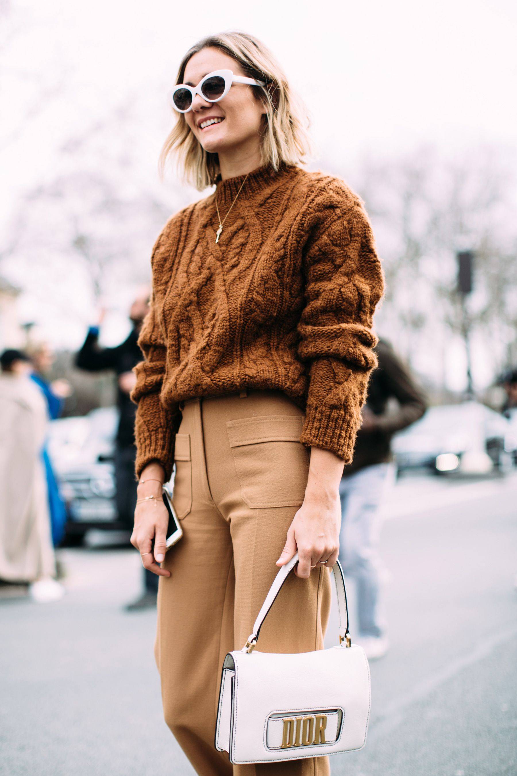 Последний цвет в подборке Pantone — классический коричневый. Этот глубокий и насыщенный цвет тоже вполне можно отнести к разряду базовых, поэтому придумать гармоничное сочетание с ним можно будет легко. В магазинах уже появляются кожаные леггинсы, классические брюки и оверсайз-свитера с использованием модного оттенка.