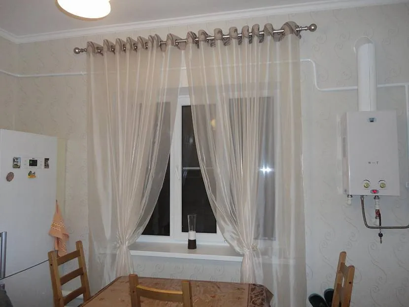 Занавеска с отливом на люверсах для кухниИсточник hdinterior.ru