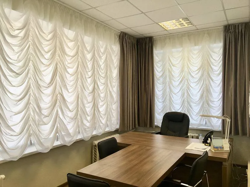 Французские шторы из этих материалов будут зрительно уменьшать пространство помещения, утяжелять его. Целесообразней их будет использовать для окон в больших помещениях с интерьером в классическом стиле.