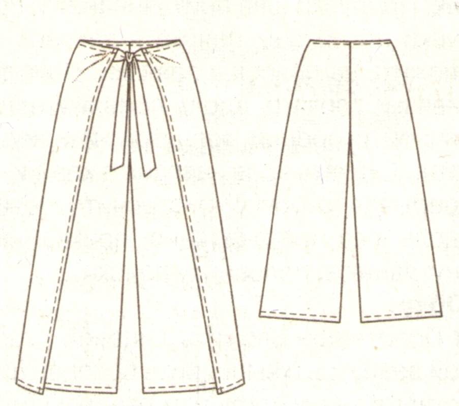 Брюки с запахом лучше сшить из легких, мягко драпирующихся тканей.