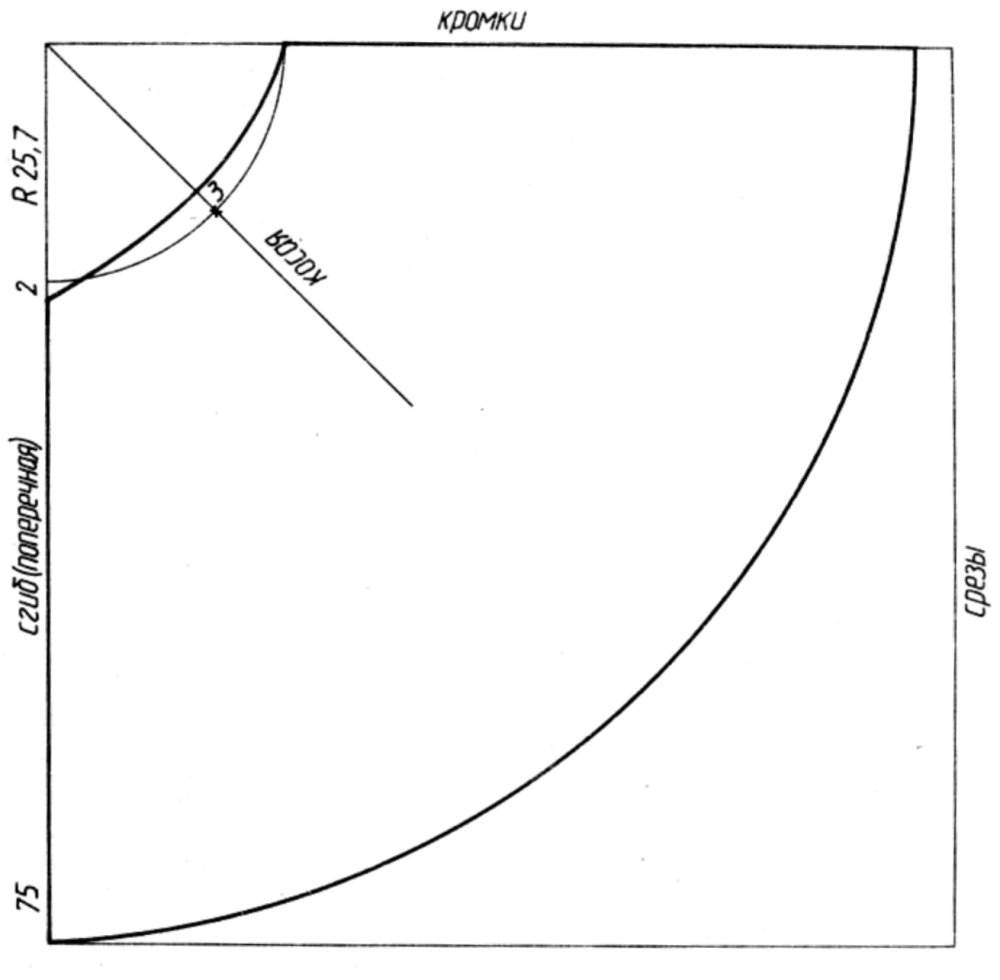 - Вычисляют радиус построения, используя формулу: К х (ОТ/2 + 1 см). Для примера: 0,9 х (78/2 + 1) = 0,9 х (39 + 1) = 0,9×40 = 36 см.